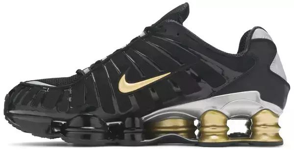 Uma colaboração entre a Nike e o astro do futebol brasileiro, o Neymar Jr. x Shox TL 'Black Gold' apresenta elementos estéticos que honram seu pedigree de campeonato. Na língua, o logotipo da Shox é girado 90 graus para ficar em sua extremidade, formando um 'N' para acompanhar a impressão subjacente como um aceno à inspiração do jogador. Este logotipo é repetido no calcanhar, enquanto uma impressão explosiva na palmilha e colunas Shox de comprimento total em detalhes em blocos de cores completam o design exclusivo.